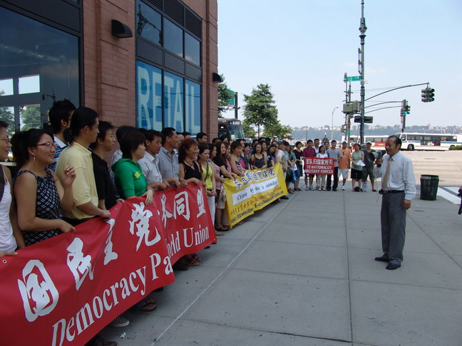 07/19/06 , at 6PM in the afternoon, more than 10 practitioners were in the front of the Chinese consulate general located in N. Y for holding the gathering titled “ strongly denounce CCP to outrageously repress Fa Lun Gong organization and persecute Fa Lun Gong practitioners” . partial members from Chinese Democratic Party World Union attended this activity.